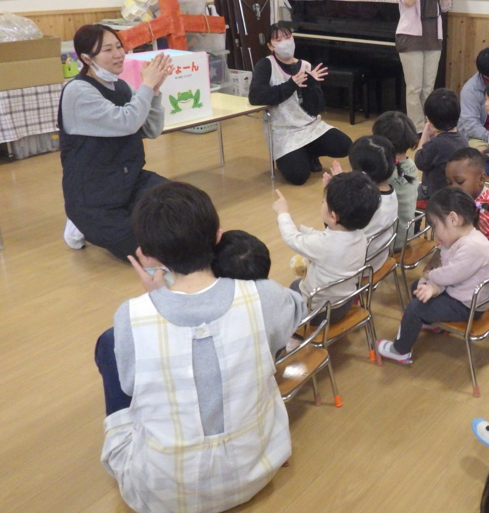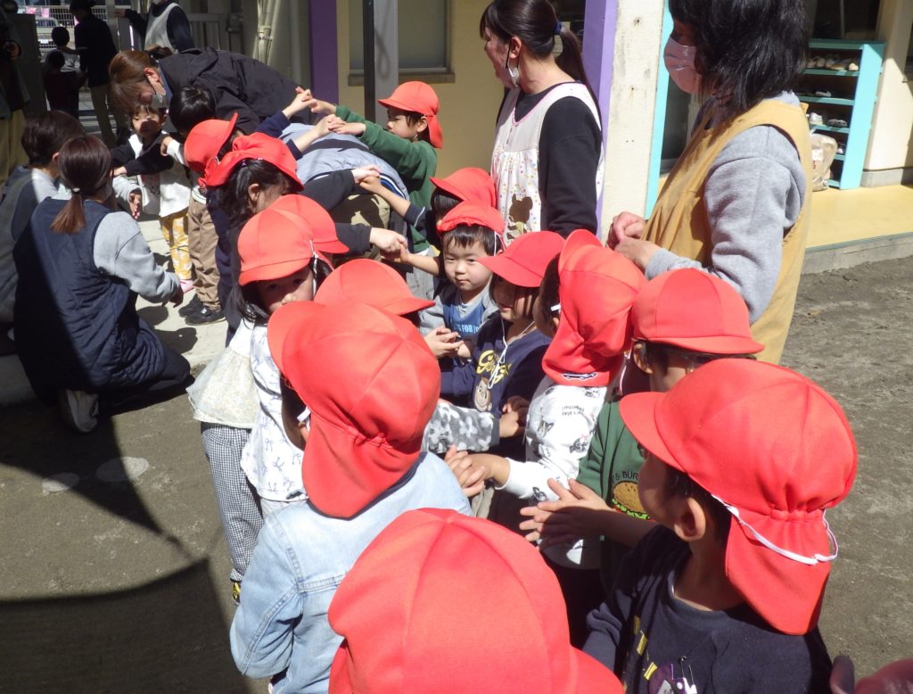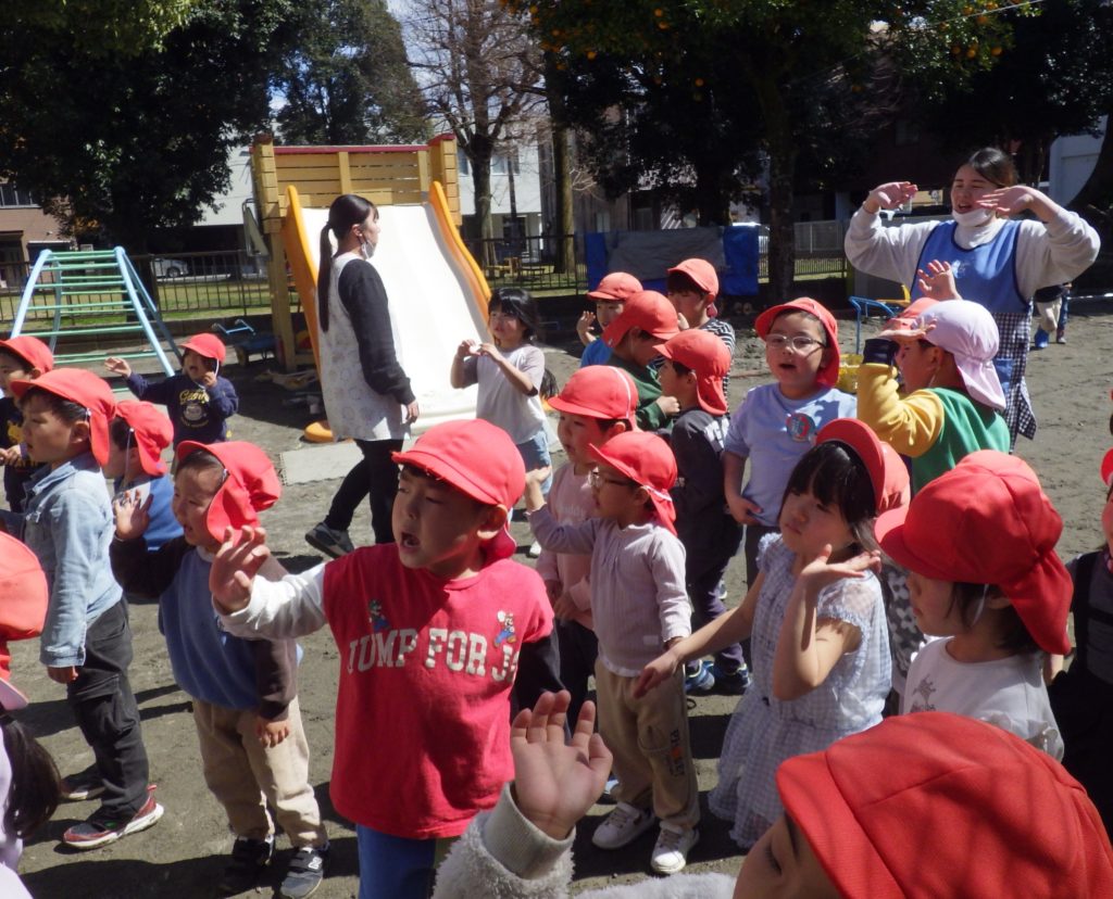 幼稚園で一緒に手遊びしたり
